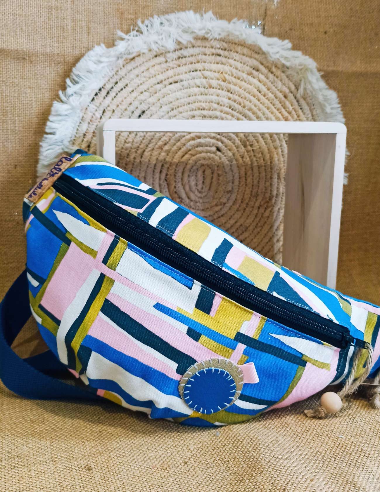 Ce sac banane est fabriqué en coton bâchette très résistant.